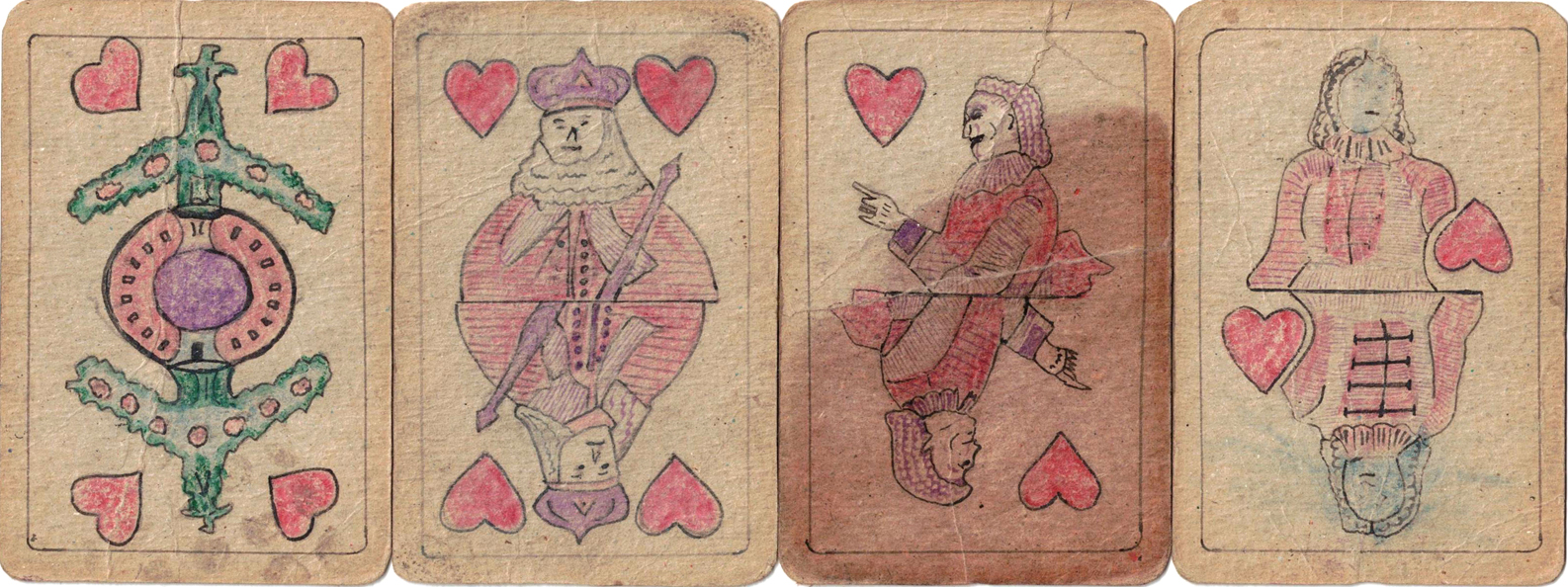 These cards were presumably made in a PoW camp, possibly at the end of WWII or shortly after.
