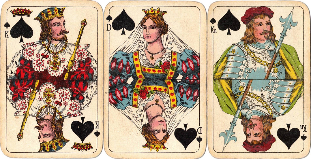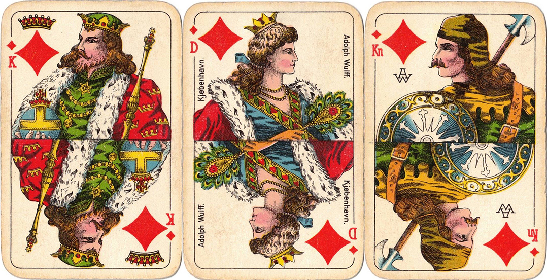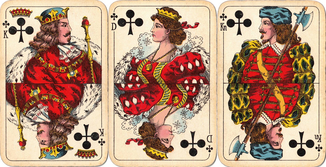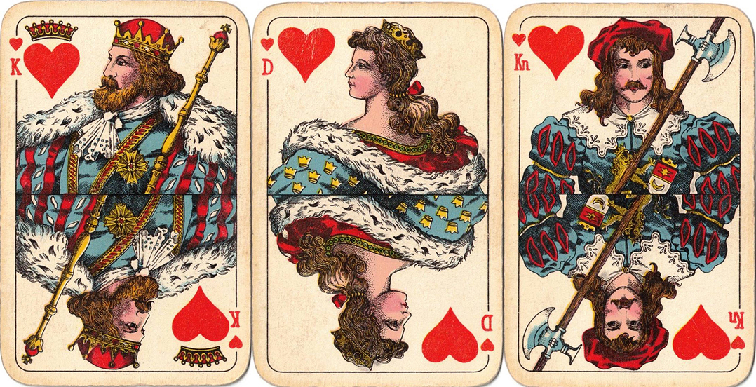 The maker's name can be found on the Queen of Diamonds, the logo on the Jack of Diamonds and on the backs.